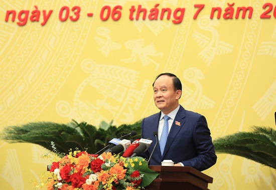 Chủ tịch HĐND TP Hà Nội Nguyễn Ngọc Tuấn phát biểu tại kỳ họp