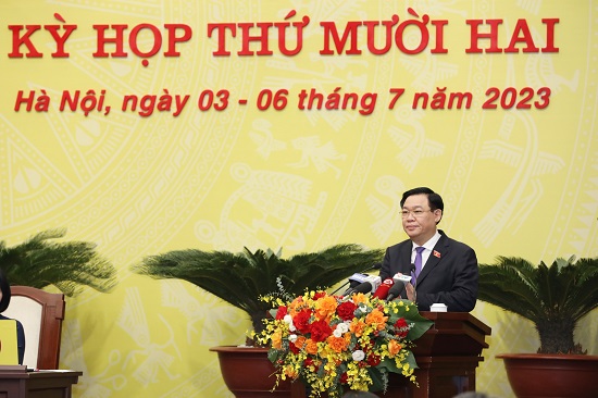 HĐND TP Hà Nội đã đề cao phương châm hoạt động “sâu sát, quyết liệt, thực chất, hiệu quả”. Trong công tác xây dựng thể chế, để giải quyết những vấn đề thực tiễn đặt ra, từ đầu nhiệm kỳ đến nay, HĐND thành phố đã ban hành 110 nghị quyết. Công tác thẩm tra các văn bản Ủy ban nhân dân (UBND) thành phố và các cơ quan hữu quan trình có sự cải thiện rõ rệt về chất lượng, thể hiện rõ chính kiến. “Đây là yếu tố quan trọng để HĐND thành phố ban hành nhiều cơ chế, chính sách, biện pháp có chất lượng cao, hiệu quả thiết thực, khả thi, phù hợp với thực tiễn, kịp thời giải quyết những vấn đề phát sinh, đột xuất”, Chủ tịch Quốc hội nói.