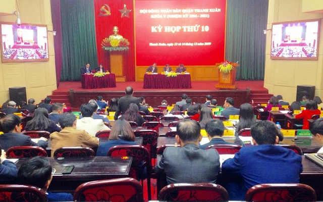 Quang cảnh buổi họp HĐND quận Thanh Xuân tháng 12/2019. Ảnh: Hồng Thái