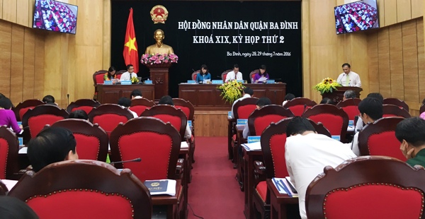Ngày 28/7, kỳ họp thứ 2 HĐND quận Ba Đình khóa 19, nhiệm kỳ 2016-2021 đã khai mạc nhằm đánh giá kết quả tình hình thực hiện nhiệm vụ kinh tế, xã hội 6 tháng đầu năm, quyết nghị nhiệm vụ trọng tâm 6 tháng cuối năm 2016.