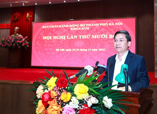 Chiều 23-11, tại trụ sở Thành ủy Hà Nội, Ban Chấp hành Đảng bộ thành phố Hà Nội khóa XVII tiến hành Hội nghị lần thứ mười bốn xem xét, cho ý kiến về 8 nội dung quan trọng, trong đó có Đồ án Điều chỉnh Quy hoạch chung Thủ đô Hà Nội đến năm 2045, tầm nhìn đến năm 2065, các chương trình, kế hoạch năm 2024 và dự thảo Chỉ thị tăng cường sự lãnh đạo của cấp ủy Đảng về xây dựng người Hà Nội thanh lịch, văn minh.