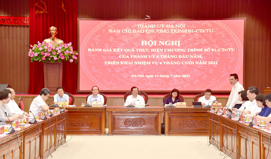 Sáng 13/7/2022, Ban Chỉ đạo Chương trình số 01-CTr/TU của Thành ủy (khóa XVII) tổ chức Hội nghị đánh giá kết quả thực hiện Chương trình 6 tháng đầu năm, triển khai nhiệm vụ 6 tháng cuối năm 2022