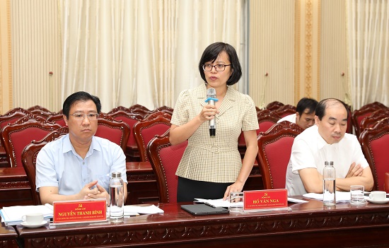 Trưởng ban Kinh tế-Ngân sách HĐND TP Hồ Vân Nga trao đổi tại buổi làm việc