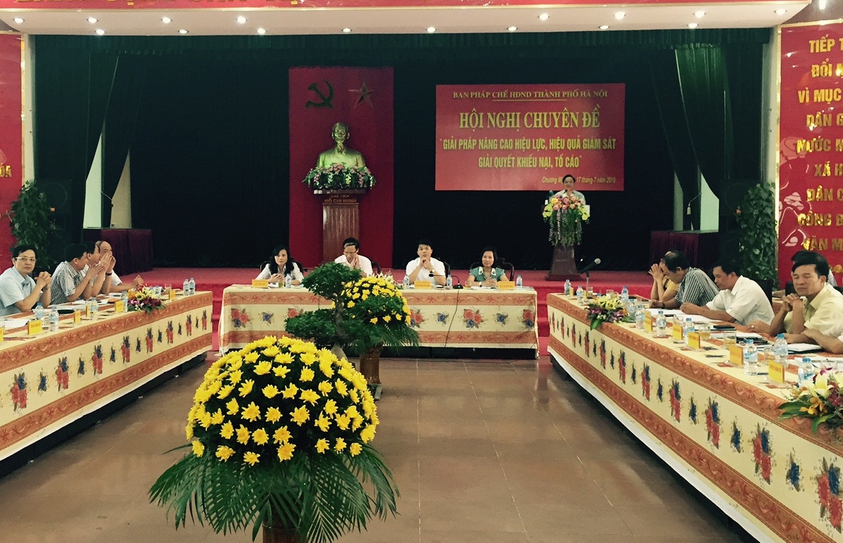 Sáng 17/7, tại huyện Chương Mỹ, Ban Pháp chế HĐND thành phố Hà Nội tổ chức hội nghị chuyên đề “giải pháp nâng cao hiệu lực, hiệu quả giám sát giải quyết khiếu nại, tố cáo”. Dự hội nghị có đồng chí Lê Văn Hoạt - Thành ủy viên, Phó Chủ tịch HĐND TP và đại diện Thường trực, Ban Pháp chế HĐND các quận, huyện, thị xã.