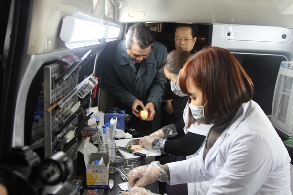 Đoàn khảo sát tiến hành lấy mẫu các sản phẩm để kiểm nghiệm