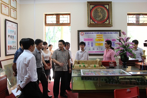 Đoàn khảo sát tại Phòng truyền thống của Trường THPT Chương Mỹ A