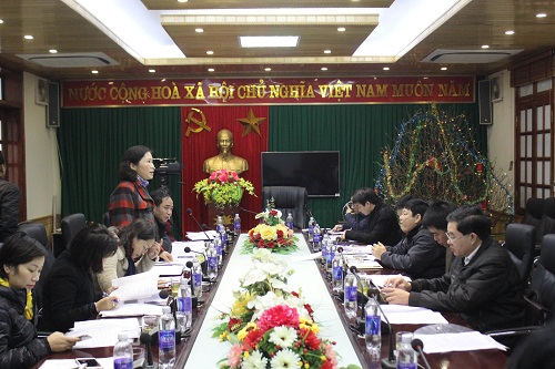 Đồng chí Nguyễn Thị Thùy, Trưởng Ban Văn hóa - Xã hội phát biểu kết luận buổi làm việc