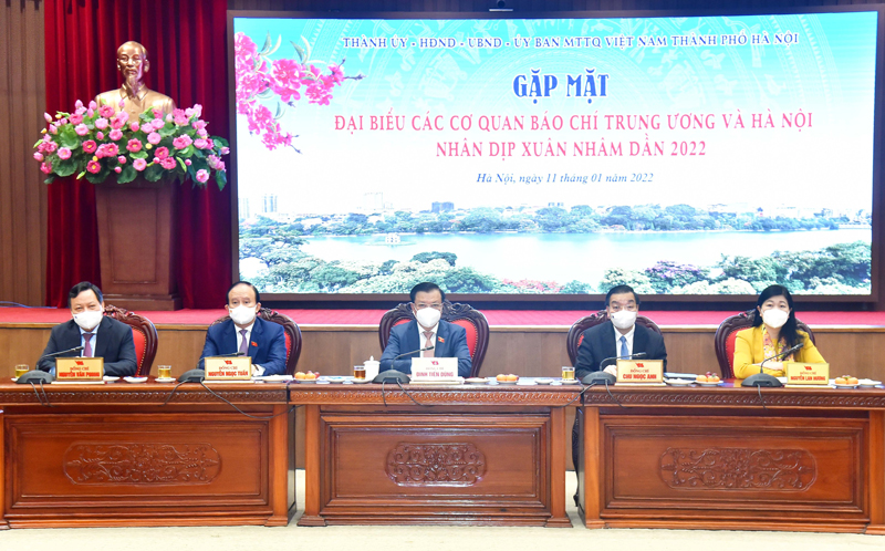 Thay mặt lãnh đạo Thành phố phát biểu tại buổi gặp mặt, Bí thư Thành ủy Đinh Tiến Dũng gửi lời cảm ơn chân thành đối với các cơ quan lãnh đạo, quản lý và đặc biệt là các cơ quan báo chí Trung ương và Thành phố, các phóng viên, biên tập viên... đã gắn bó, theo sát tình hình và tích cực thông tin, tuyên truyền về Hà Nội, tạo cầu nối giữa cấp ủy, chính quyền với nhân dân Thủ đô, giữa Thủ đô với cả nước.