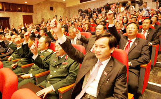 Các đại biểu biểu quyết thông qua Nghị quyết Đại hội. Ảnh: Thanh Hải