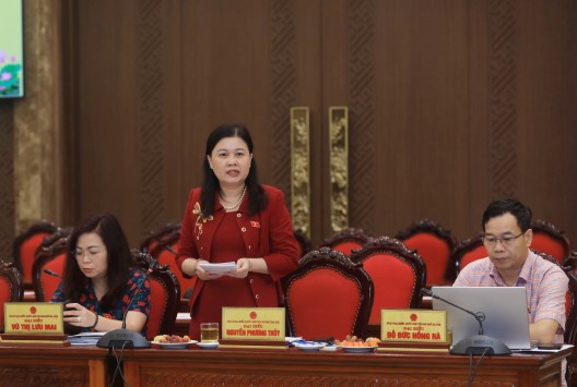 Đồng chí Bùi Thị Minh Hoài đề nghị HĐND, UBND thành phố tập trung ban hành sớm các văn bản triển khai thi hành Luật Thủ đô (sửa đổi) trên tinh thần bảo đảm phát huy và tận dụng tốt nhất các cơ chế đặc thù vượt trội để phát triển.