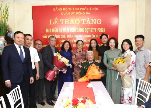 Sáng 4/11/2024, đồng chí Bùi Thị Minh Hoài, Ủy viên Bộ Chính trị, Bí thư Thành ủy, Trưởng đoàn đại biểu Quốc hội thành phố Hà Nội đã đến nhà riêng trao Huy hiệu 80 năm tuổi Đảng tặng đồng chí Đoàn Duy Thành (Đảng bộ quận Ba Đình) và đồng chí Trần Giang (Đảng bộ quận Đống Đa) nhân kỷ niệm 107 năm Cách mạng Tháng Mười Nga (7/11/1917 - 7/11/2024).
