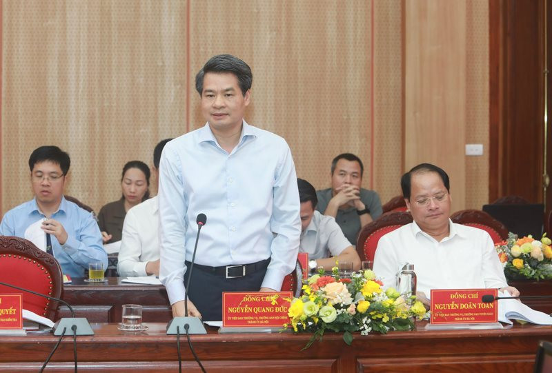 Bí thư Thành ủy Hà Nội Đinh Tiến Dũng kết luận buổi làm việc.