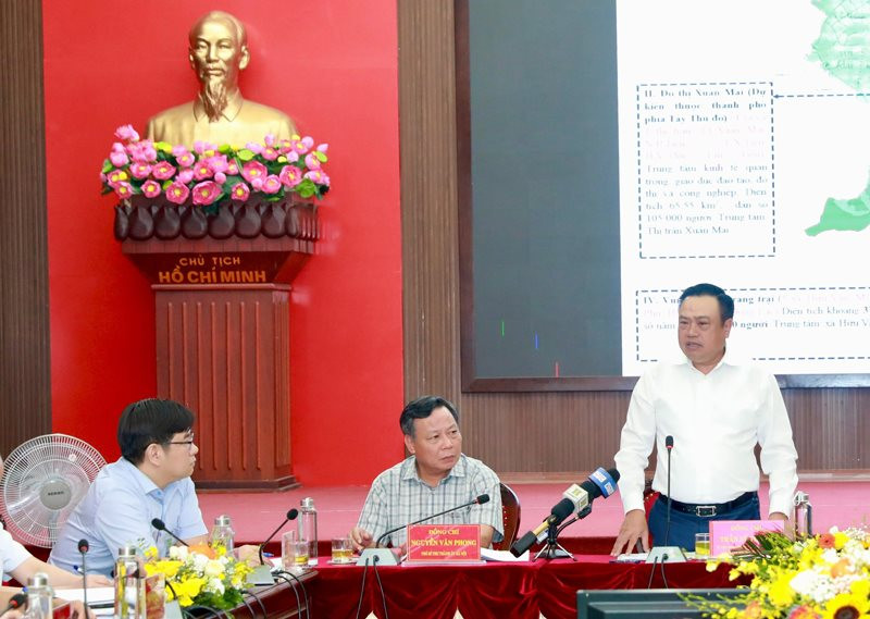 Phó Bí thư Thành ủy Nguyễn Văn Phong, Chủ tịch HĐND thành phố Nguyễn Ngọc Tuấn, Chủ tịch UBND thành phố Trần Sỹ Thanh đề nghị, huyện phải tập trung khơi dậy khát vọng phát triển, chủ động đeo bám các sở, ngành để tập trung thực hiện các chỉ đạo của lãnh đạo thành phố, tăng cường công tác cán bộ, nhất là công tác đào tạo, nâng cao chất lượng đội ngũ để chuẩn bị cho những bước phát triển mạnh trong thời gian tới khi đường Vành đai 4 hay dự án cải tạo, nâng cấp quốc lộ 6 hoàn thành...