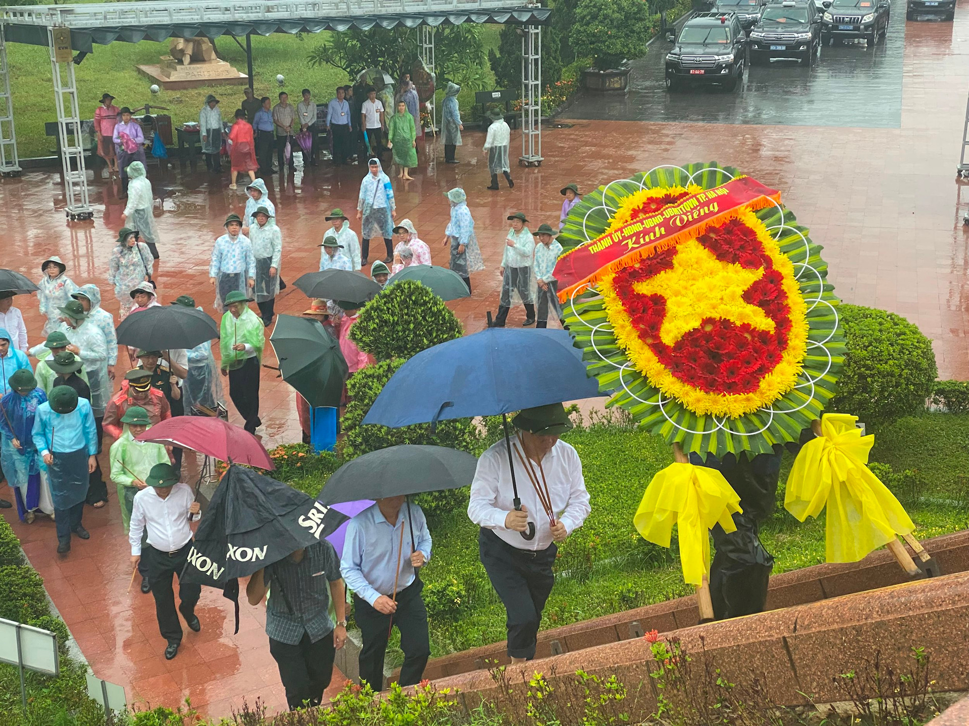 Buổi lễ diễn ra dưới cơn mưa nặng hạt do ảnh hưởng của Cơn bão số 1 (bão Talim).