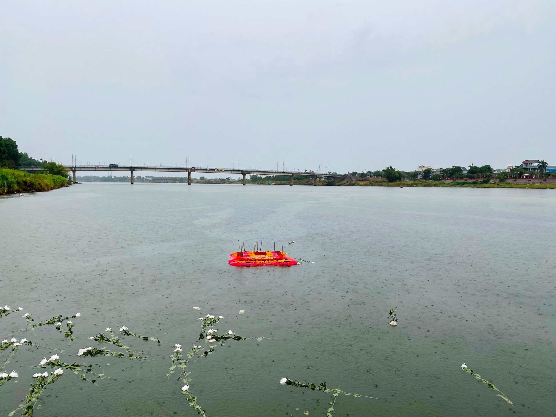 Những bông hoa trôi đi theo dòng nước đã gửi những lời tri ân cùng những lời nguyện cầu cho sự bình an, siêu thoát của những linh hồn chiến sĩ, đồng bào.