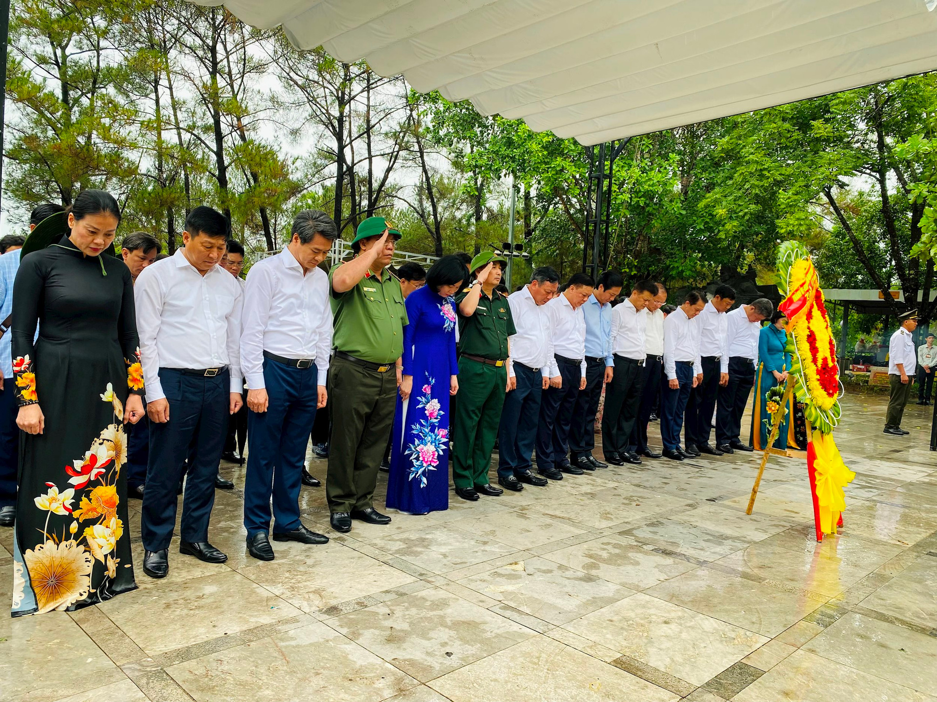 Đoàn đại biểu thành phố Hà Nội dành một phút mặc niệm tưởng nhớ các anh hùng liệt sĩ tại Nghĩa trang Trường Sơn.