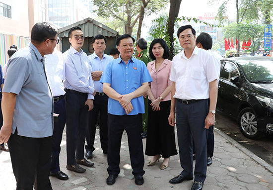 Bí thư Thành ủy Đinh Tiến Dũng kiểm tra tình hình quản lý, sử dụng lòng đường, vỉa hè trên tuyến phố Kim Đồng