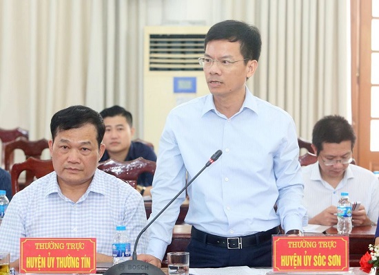 Bí thư Huyện ủy Sóc Sơn Bùi Duy Cường phát biểu tại hội nghị.