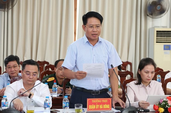 Bí thư Quận ủy Hà Đông Nguyễn Thanh Xuân phát biểu tại hội nghị.