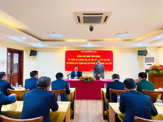 Bí thư Thành ủy Hà Nội Đinh Tiến Dũng thăm Đại sứ quán Việt Nam tại Lào