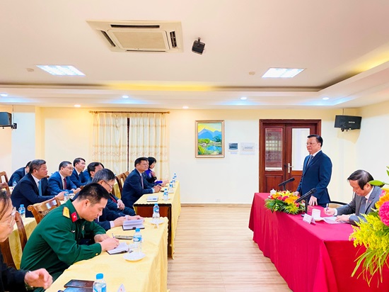 Đại sứ Việt Nam tại Lào Nguyễn Bá Hùng báo cáo tình hình, kết quả hoạt động của Đại sứ quán.