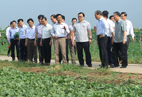 Bí thư Thành ủy Hoàng Trung Hải khảo sát thực tế vùng trồng rau an toàn tại thôn Đông Cao, xã Tráng Việt