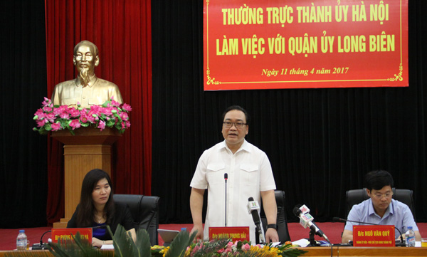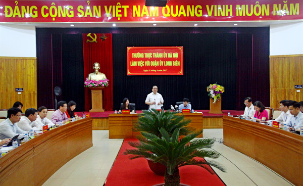 Thống nhất với các nhiệm vụ trọng tâm về phát triển kinh tế - xã hội, an ninh quốc phòng trong 9 tháng cuối năm 2017 của quận Long Biên, Bí thư Thành ủy đề nghị quận quan tâm đến công tác xây dựng Đảng, CCHC, thực hiện "Năm kỷ cương hành chính 2017".