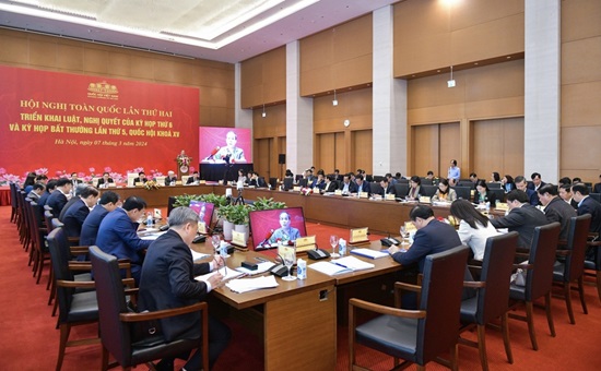 Hội nghị diễn ra dưới hình thức trực tiếp tại Nhà Quốc hội, đồng thời kết nối trực tuyến tới 63 điểm cầu tại các tỉnh/thành phố trong cả nước.