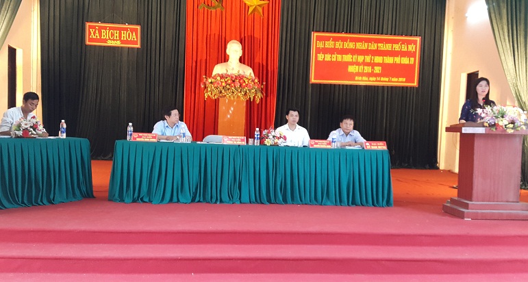 * Tại trụ sở HĐND và UBND xã Bích Hòa, Tổ đại biểu HĐND Thành phố Đơn vị bầu cử số 14 gồm các ông bà: Phùng Thị Hồng Hà, Thành ủy viên, Phó Chủ tịch HĐND TP; Nguyễn Nguyên Quân, Trưởng ban Đô thị HĐND TP và Nguyễn Minh Chung, Chủ tịch HĐTV Tổng công ty Du lịch Hà Nội đã tiến hành tiếp xúc cử tri tại huyện Thanh Oai, trước kỳ họp thứ 2 HĐND thành phố Hà Nội khóa XV.