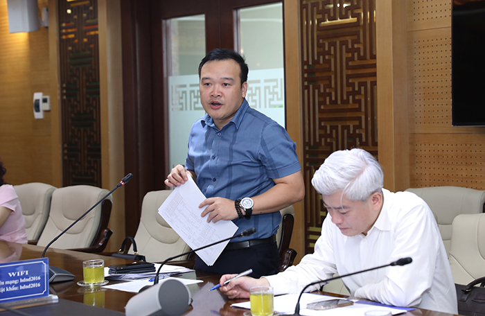 Phó Giám đốc Sở Tài nguyên và Môi trường Hà Nội Mai Trọng Thái phát biểu tại buổi làm việc