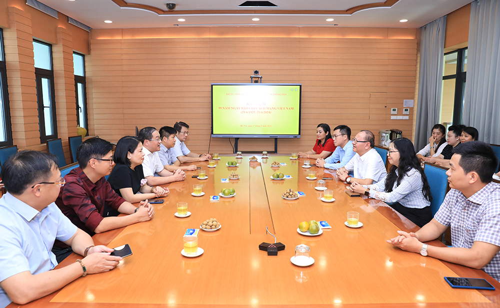 Nhân kỷ niệm 99 năm Ngày Báo chí Cách mạng Việt Nam (21/6/1925 - 21/6/2024), thừa ủy quyền của Thường trực HĐND thành phố Hà Nội, sáng 17/6/2024, đồng chí Nguyễn Ngọc Việt, Thành ủy viên, Chánh Văn phòng Đoàn Đại biểu Quốc hội và Hội đồng nhân dân thành phố Hà Nội đã đến thăm, chúc mừng tập thể lãnh đạo, phóng viên, biên tập viên Trung tâm Thông tin điện tử thành phố Hà Nội (đơn vị quản lý Cổng Giao tiếp điện tử thành phố Hà Nội).
