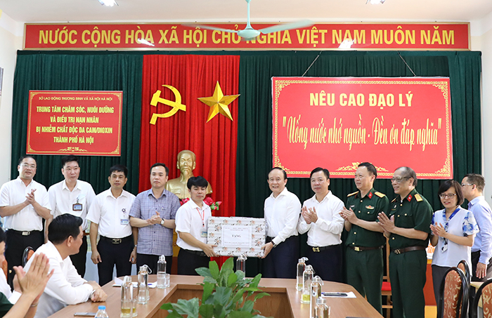 Báo cáo với Đoàn công tác, Giám đốc Trung tâm chăm sóc, nuôi dưỡng và điều trị nạn nhân bị nhiễm chất độc da cam/dioxin thành phố Trần Đăng Khoa cho biết, Trung tâm trước đây là Trung tâm Giáo dục Lao động Xã hội số 8, nhiệm vụ là cai nghiện ma túy cho đối tượng nam giới. Thực hiện Quyết định 6883/QĐ-UBND ngày 14/12/2015, của UBND thành phố Hà Nội, Trung tâm được đổi tên, xác định lại chức năng, nhiệm vụ và kiện toàn cơ cấu tổ chức bộ máy thành Trung tâm chăm sóc, nuôi dưỡng và điều trị nạn nhân bị nhiễm chất độc da cam/dioxin Thành phố.