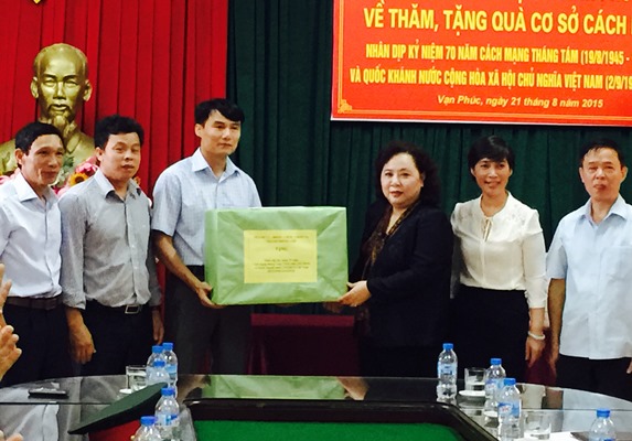 Chủ tịch HĐND thành phố Nguyễn Thị Bích Ngọc tặng quà cơ sở cách mạng phường Vạn Phúc, quận Hà Đông