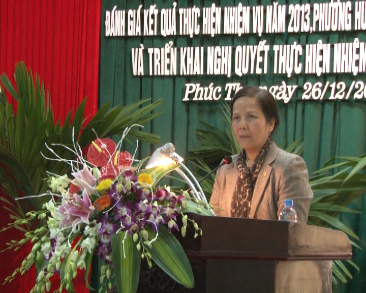 Ngày 26/12, Ban chấp hành Đảng bộ Huyện Phúc Thọ tổ chức Hội nghị lần thứ 19 để đánh giá kết quả thực hiện nhiệm vụ năm 2013 và triển khai nhiệm vụ năm 2014. Đồng chí Ngô Thị Doãn Thanh, Ủy viên Trung ương Đảng, Phó Bí thư Thành ủy, Chủ tịch HĐND Thành phố tới dự và chỉ đạo Hội nghị.