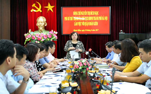 Chủ tịch HĐND TP Hà Nội Nguyễn Thị Bích Ngọc phát biểu tại buổi làm việc với quận Hoàn Kiếm. Ảnh: Anh Tuấn