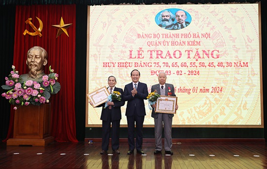 Dịp này, Đảng bộ quận Hoàn Kiếm vinh dự có 227 đảng viên được trao Huy hiệu Đảng. Trong đó, có 2 đảng viên vinh dự nhận Huy hiệu 75 năm tuổi Đảng; 5 đảng viên nhận Huy hiệu 70 năm tuổi Đảng; 1 đảng viên vinh dự được nhận Huy hiệu 80 năm tuổi Đảng.
