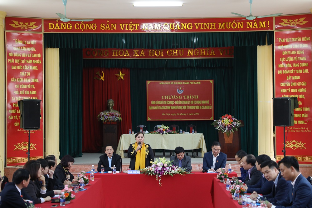 Chiều 26-3, nhân kỷ niệm 88 năm ngày thành lập Đoàn thanh niên cộng sản Hồ Chí Minh, Phó Bí thư Thành uỷ, Chủ tịch HĐND Thành phố Nguyễn Thị Bích Ngọc, Trưởng ban Chỉ đạo Chương trình 04-CTr/TU của Thành ủy Hà Nội về “Phát triển văn hóa - xã hội, nâng cao chất lượng nguồn nhân lực Thủ đô, xây dựng người Hà Nội thanh lịch, văn minh giai đoạn 2016-2020” (Chương trình 04) đã thăm các công trình thanh niên thực hiện tốt Chương trình 04 của Thành uỷ tại quận Hoàng Mai và huyện Gia Lâm.