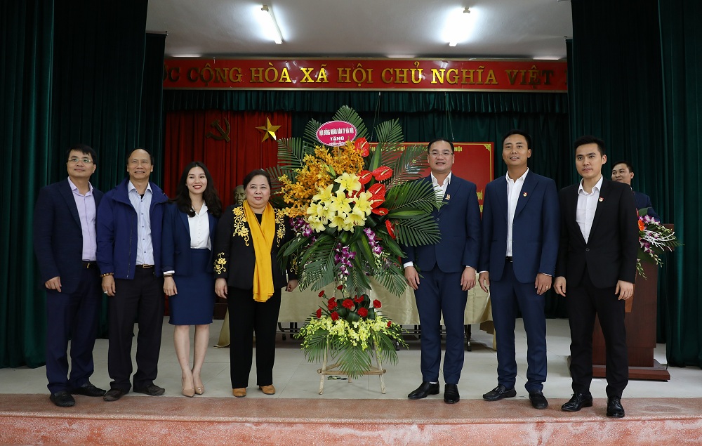 Phó Bí thư Thành ủy, Chủ tịch HĐND Thành phố Nguyễn Thị Bích Ngọc tặng lẵng hoa chúc mừng Thành đoàn Hà Nội nhân dịp kỷ niệm 88 năm ngày thành lập Đoàn thanh niên cộng sản Hồ Chí Minh