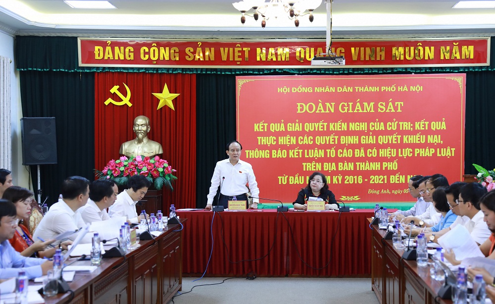 Kết luận tại buổi giám sát Chủ tịch HĐND Thành phố Nguyễn Thị Bích Ngọc khẳng định: Giải quyết đơn thư khiếu nại, tố cáo là một trong những nhiệm vụ nổi bật của HĐND Thành phố. Sau đợt giám sát này, Thường trực HĐND Thành phố sẽ có kiến nghị các cấp, các ngành có giải pháp đẩy nhanh giải quyết những vụ việc tồn đọng, nếu vẫn không thực hiện, chỉ rõ trách nhiệm thuộc cá nhân, đơn vị nào, tiến độ bao giờ xong. HĐND sẽ có cách xử lý với từng vụ việc cụ thể. “Đề nghị Ban Pháp chế và các đơn vị liên quan thống nhất lại về số liệu, phân loại vụ việc, các vụ còn lại thuộc trách nhiệm ở đâu, để sau đó HĐND Thành phố có báo cáo thống nhất, làm việc cụ thể với UBND Thành phố và ban hành một nghị quyết về công tác này của Thành phố”. Chủ tịch Nguyễn Thị Bích Ngọc đánh giá: Thời gian qua, cấp ủy, chính quyền huyện Đông Anh rất coi trọng, quyết liệt trong công tác này, nên trong 1 năm qua đã giải quyết khoảng 40% tổng số các ý kiến kiến nghị của cử tri, quyết định giải quyết khiếu nại, thông báo kết luận tố cáo đã có hiệu lực và các vụ việc thuộc Nghị quyết 15, trong đó lãnh đạo huyện thể hiện nắm chắc vấn đề, phân công phân nhiệm rõ ràng cho các đơn vị, góp phần đảm bảo an ninh trật tự trên địa bàn.