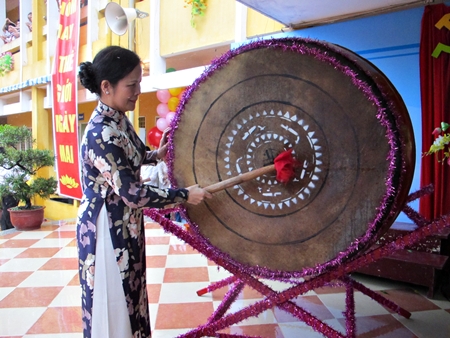 Chủ tịch HĐND Thành phố đánh trống khai giảng năm học mới tại Trường Tiểu học Thành Công A
