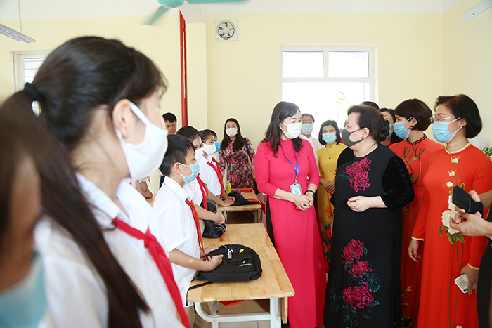 Nhân dịp này, Phó Bí thư Thành ủy, Chủ tịch HĐND thành phố Nguyễn Thị Bích Ngọc đã tặng hoa chúc mừng thầy, trò nhà trường và thay mặt lãnh đạo thành phố trao tặng ngành Giáo dục và Đào tạo thị xã Sơn Tây 10.000 khẩu trang y tế và các vật phẩm phục vụ cho công tác phòng, chống dịch Covid-19.