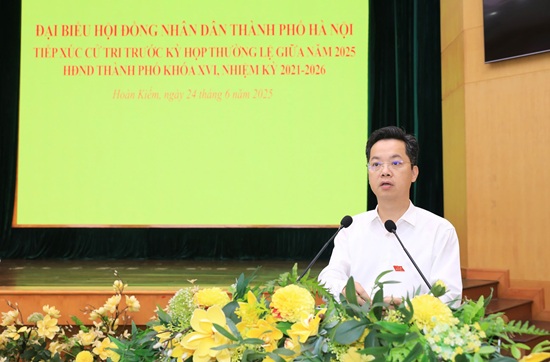 Tại hội nghị, đồng chí Đàm Văn Huân, Ủy viên Thường trực, Trưởng ban Đô thị HĐND Thành phố đã thông tin với cử tri về dự kiến nội dung kỳ họp chuyên đề tháng 6 của HĐND thành phố và nội dung kỳ họp giữa năm 2025 của HĐND thành phố; đồng chí Vũ Đăng Định, Thành ủy viên, Bí thư Quận ủy, Chủ tịch HĐND quận Hoàn Kiếm báo cáo tóm tắt kết quả thực hiện các nhiệm vụ phát triển kinh tế-xã hội, an ninh quốc phòng của thành phố 6 tháng đầu năm, nhiệm vụ trọng tâm 6 tháng cuối năm và báo cáo tổng hợp trả lời các kiến nghị của cử tri quận Hoàn Kiếm tại các kỳ tiếp xúc trước.