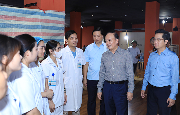 Chủ tịch HĐND Thành phố Nguyễn Ngọc Tuấn thăm hỏi, động viên các lực lượng hỗ trợ chăm sóc cho người dân tại nơi lưu trú