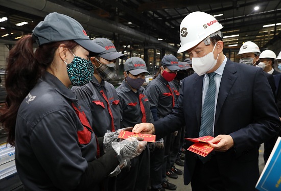 Những hình ảnh lãnh đạo Thành phố thăm, động viên công nhân, người lao động tại cơ sở sản xuất của Công ty cổ phần Quốc tế Sơn Hà: