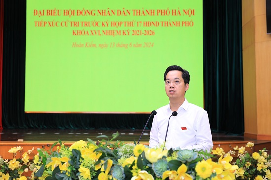 Tại buổi tiếp xúc, cử tri quận Hoàn Kiếm đã nghe đại biểu Vũ Đăng Định, Bí thư Quận ủy Hoàn Kiếm thông tin về thời gian, nội dung, chương trình Kỳ họp thường lệ giữa năm (Kỳ họp thứ 17) HĐND Thành phố khóa XVI, nhiệm kỳ 2021-2026; đại biểu Chu Hồng Minh, Bí thư Thành đoàn Hà Nội thông tin về kết quả thực hiện nhiệm vụ phát triển kinh tế - xã hội, kết quả trả lời kiến nghị của cử tri quận Hoàn Kiếm tại kỳ họp trước.