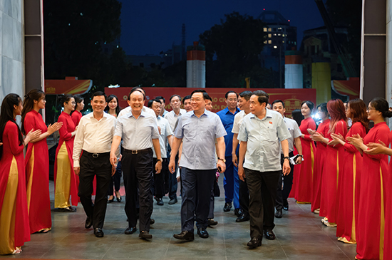 Chủ tịch Quốc hội Vương Đình Huệ cùng các đại biểu kiểm tra công tác chuẩn bị phục vụ lễ trao Giải Diên Hồng