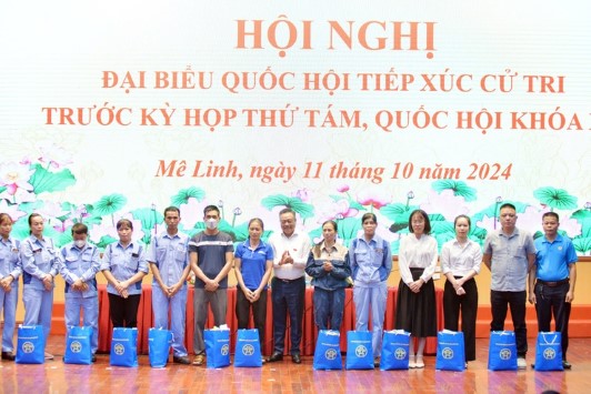 Tại Hội nghị, Đoàn đại biểu Quốc hội thành phố Hà Nội phối hợp với Liên đoàn Lao động Thành phố tặng 30 suất quà, mỗi suất trị giá 1 triệu đồng cho công nhân, người lao động có hoàn cảnh khó khăn trên địa bàn huyện Mê Linh.