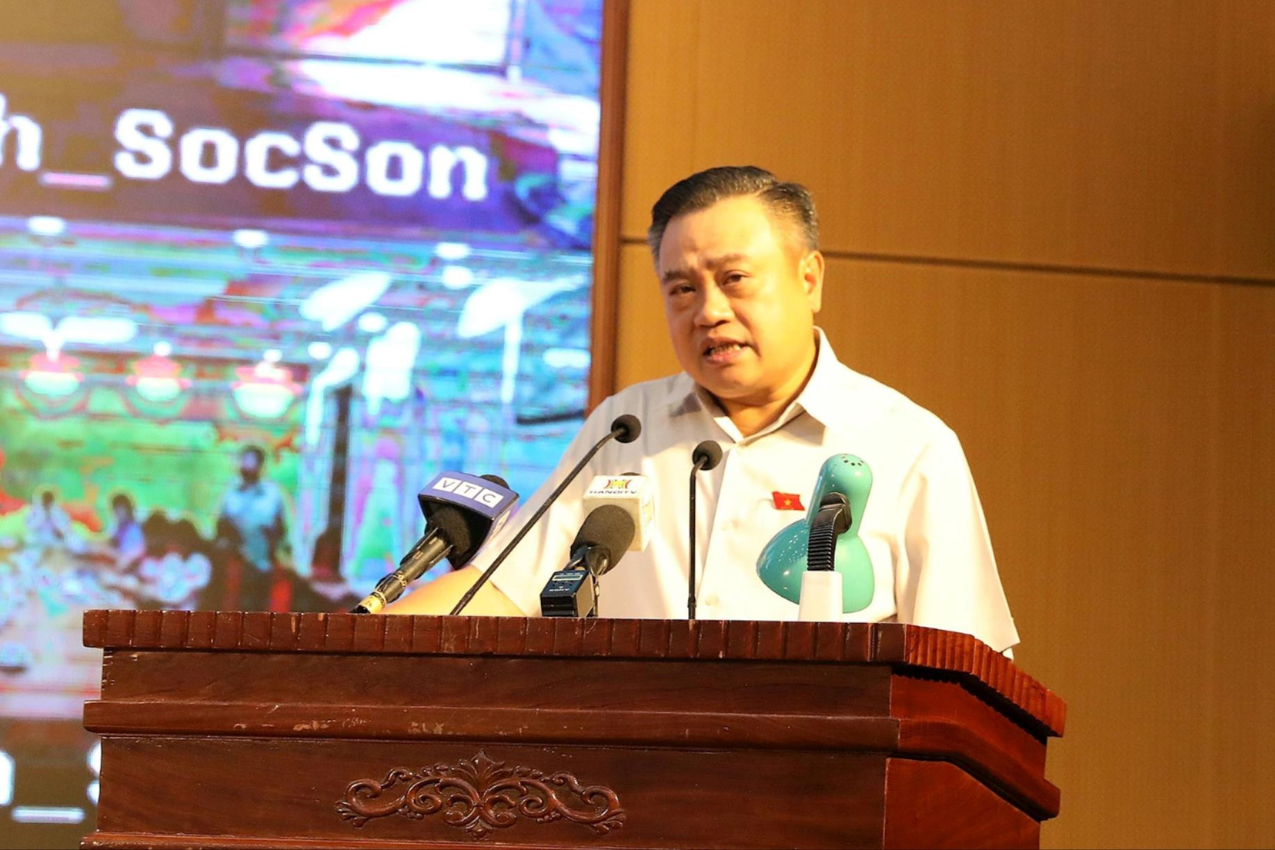 Trao đổi với cử tri về công việc của thành phố thời gian qua, Chủ tịch UBND thành phố cho biết, ngày 25-6, thành phố Hà Nội và các tỉnh Bắc Ninh, Hưng Yên đã tổ chức khởi công Dự án đầu tư xây dựng đường Vành đai 4 - Vùng Thủ đô Hà Nội. Đây là kết quả rất quan trọng, sau 1 năm 9 ngày tập trung thực hiện công tác chuẩn bị đầu tư và đặc biệt là công tác giải phóng mặt bằng, nhờ sự cố gắng vượt bậc của Đảng bộ, chính quyền và đặc biệt là sự ủng hộ của nhân dân các địa phương, trong đó có hai huyện Mê Linh, Sóc Sơn.