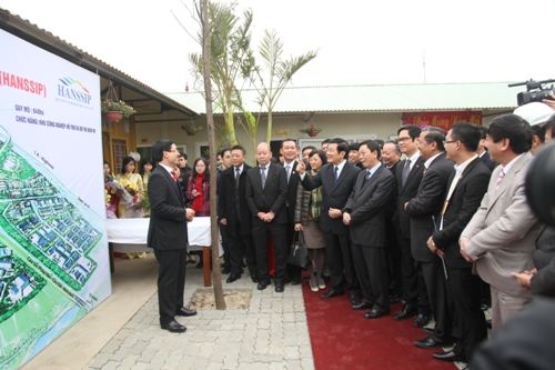 Sáng 11/2, đồng chí Trương Tấn Sang, Ủy viên Bộ Chính trị, Chủ tịch nước đã tới thăm và kiểm tra khu công nghiệp hỗ trợ Nam Hà Nội, tại xã Đại Xuyên, huyện Phú Xuyên, thành phố Hà Nội. Cùng đi có đồng chí: Nguyễn Thế Thảo, Ủy viên Trung ương Đảng, Chủ tịch UBND TP Hà Nội; Vũ Tiến Lộc, Ủy viên Trung ương Đảng, Chủ tịch Phòng Thương mại và Công nghiệp Việt Nam; cùng đại diện lãnh đạo các sở, ngành của TP Hà Nội. Dự án khu công nghiệp hỗ trợ Nam Hà Nội (Hanssip) - là khu công nghiệp hỗ trợ đầu tiên của Việt Nam. Nằm tại cửa ngõ phía Nam Thủ đô, Dự án có quy mô 640 ha, dự kiến khi đi vào hoạt động ổn định sẽ thu hút khoảng 3.000 doanh nghiệp lớn nhỏ, tạo ra trên 30 nghìn việc làm mới, đóng góp vào ngân sách nhà nước hằng năm từ 15 đến 20 nghìn tỷ đồng. Hiện, Dự án đang được san lấp mặt bằng, xây dựng hạ tầng trong và ngoài khu công nghiệp, theo kế hoạch, đến cuối Quý II/2014, sẽ bàn giao cho các doanh nghiệp vào xây dựng nhà máy.