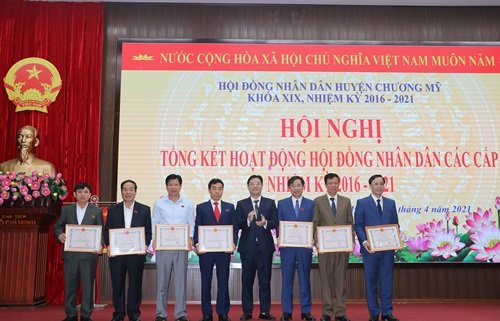 Tại hội nghị, tập thể Thường trực HĐND huyện Chương Mỹ vinh dự được UBND Thành Phố tặng cờ thi đua đơn vị xuất sắc; 6 tập thể và 38 cá nhân được Thành phố tặng Bằng khen. UBND huyện Chương Mỹ cũng đã biểu dương, khen thưởng 18 tập thể và 46 cá nhân đã có thành tích xuất sắc trong hoạt động HĐND các cấp trên địa bàn huyện Chương Mỹ, nhiệm kỳ 2016-2021.